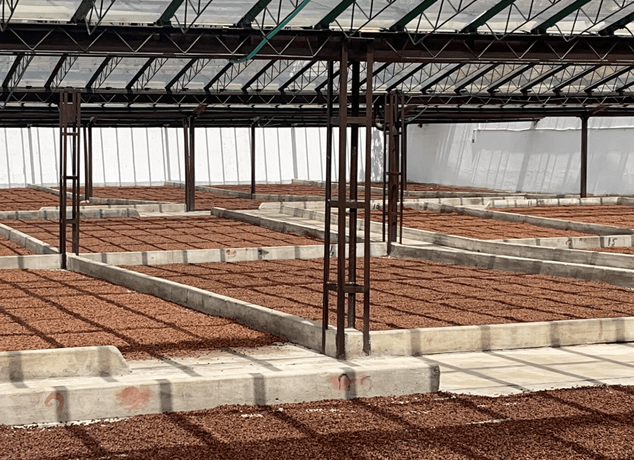 Cherries are pulped and washed and will proceed to the first drying phase in canopy controlled coffee drying at 40 °c and 25% humidity for approximately 20 days